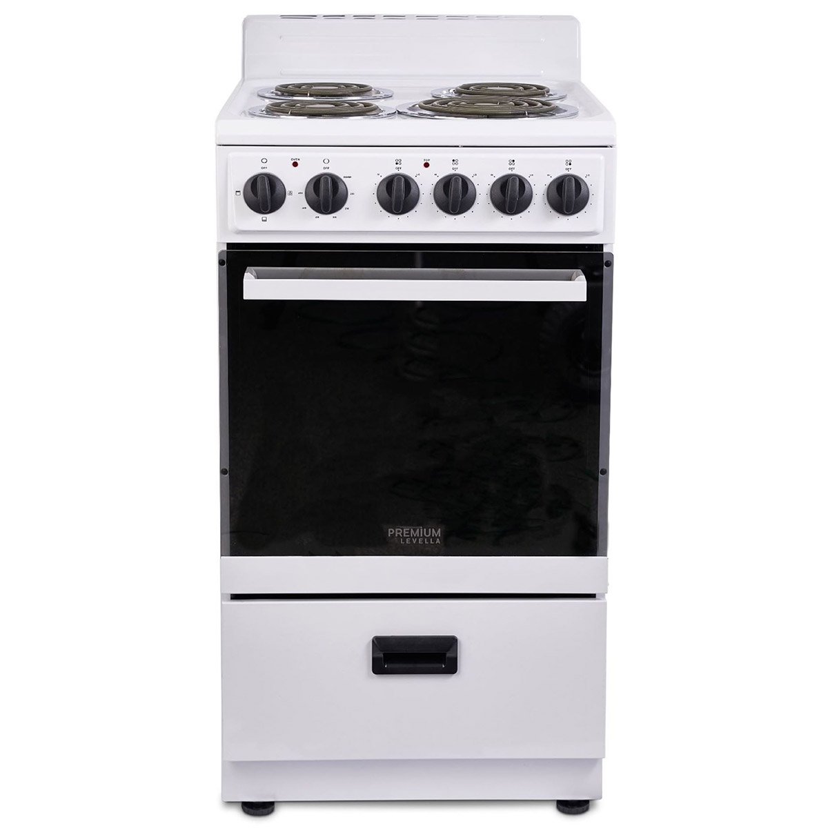 Capacity: 2.1 ft? Width: 20″ White color. 4 Burners. 4 Spiral hot plat: 3x1250W for 6″, 1x2100W for 8″. Oven: 1800W + 2000W. Electric oven with top and bottom heating elements by stainless steel. Glass door mirror. Oven temperature control from 220 ?F to 450 ?F. Voltage: 240V/208V 60Hz Power: Max 7850 Watts for 240V 60Hz / Max 5900 Watts for 208V 60Hz