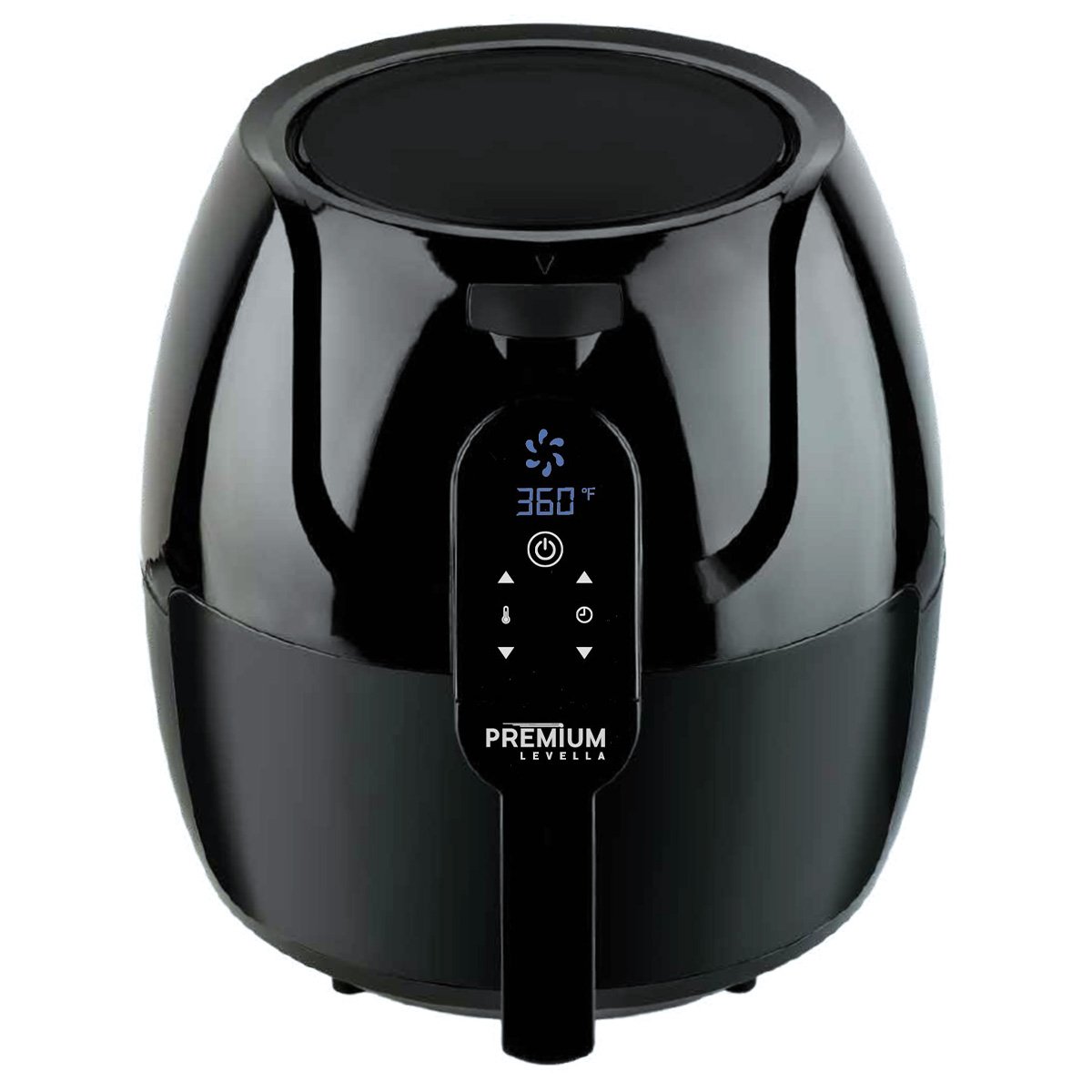For Frying, grilling, broiling, baking, roasting and heating. Uses little to no oil depending on the food being prepared. Rapid hot air circulating system fries food faster while saving energy. Power and pre-heating indicator lights. Temperature control range 180?F – 400?F. Hot air flow system. High efficiency & energy saving. 60-minute timer with auto shut-off. Food basket with non-stick coating and a grill inside. Power: 1,700 Watts.